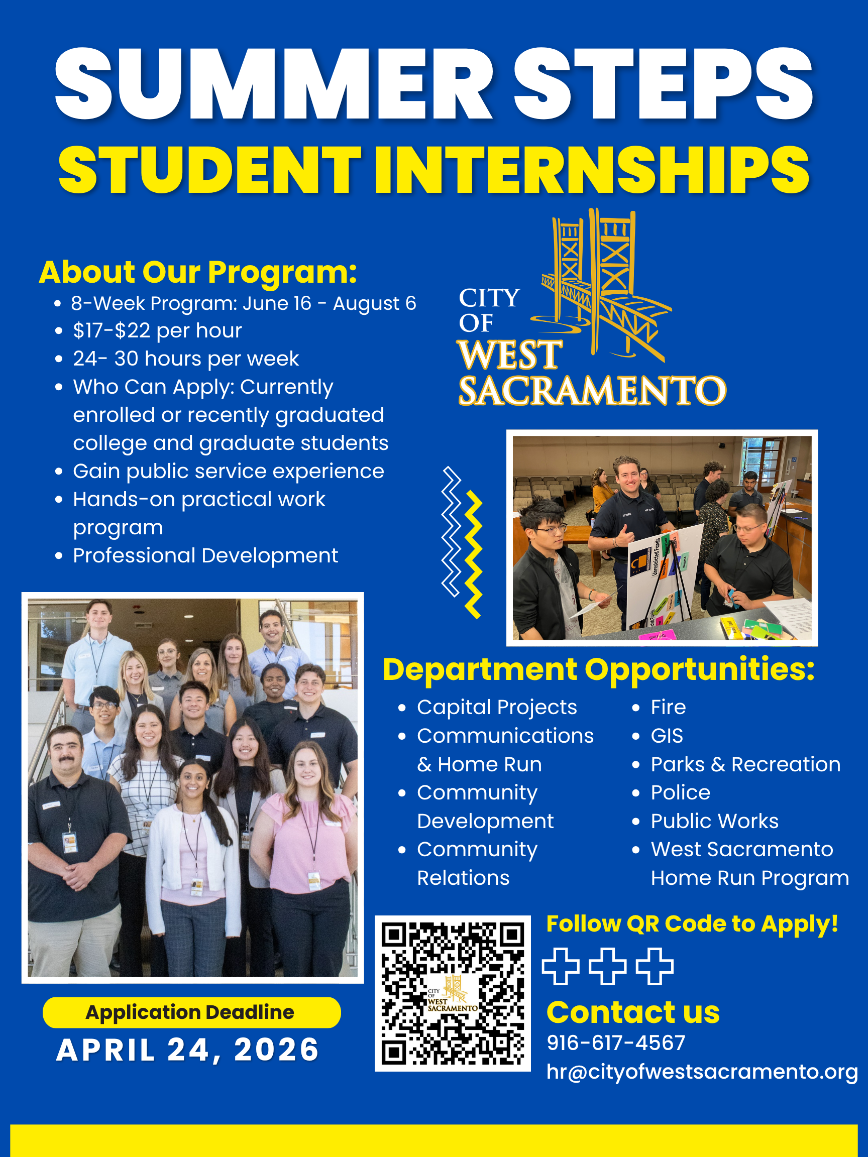 Invest in your future and serve your community this summer. Apply today for the City of West Sacramento's Student Summer Internship Program and embark on an enriching journey of professional growth and civic engagement.